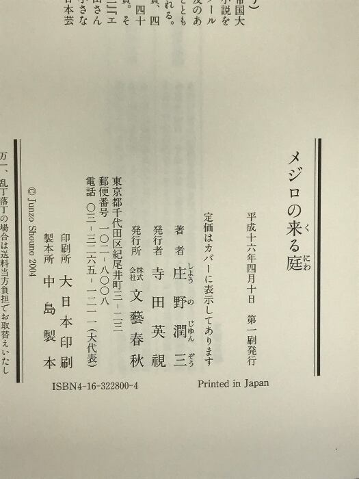 タイトル:メジロの来る庭 文藝春秋 庄野 潤三