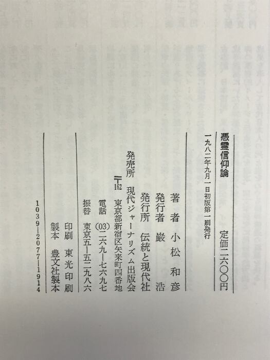 タイトル:憑霊信仰論 伝統と現代社 小松和彦