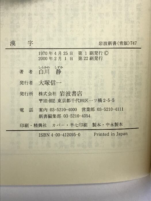 タイトル:漢字: 生い立ちとその背景 (岩波新書 青版 747) 岩波書店 白川 静