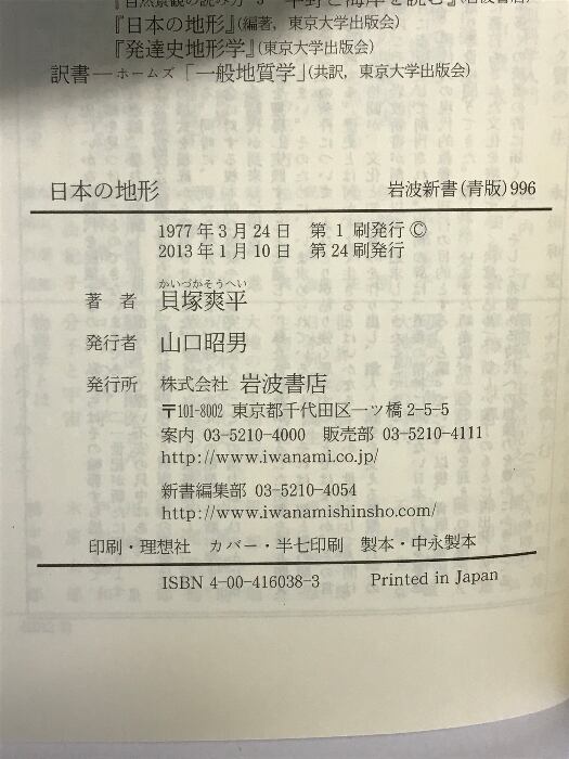 日本の地形――特質と由来 (岩波新書) 岩波書店 貝塚 爽平