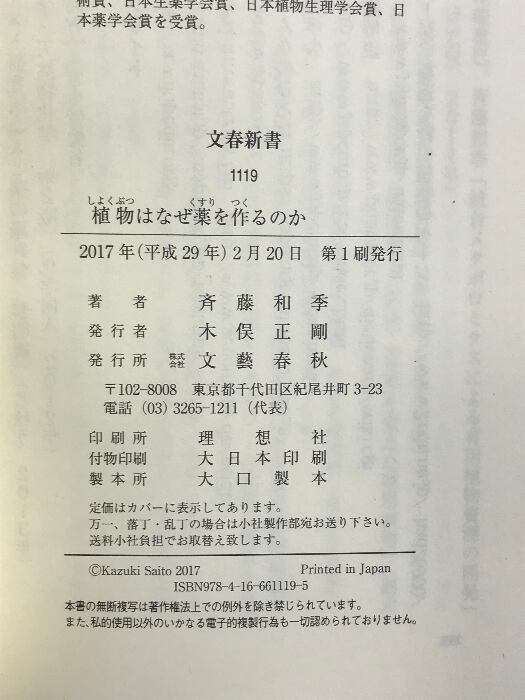 植物はなぜ薬を作るのか (文春新書) 文藝春秋 斉藤 和季