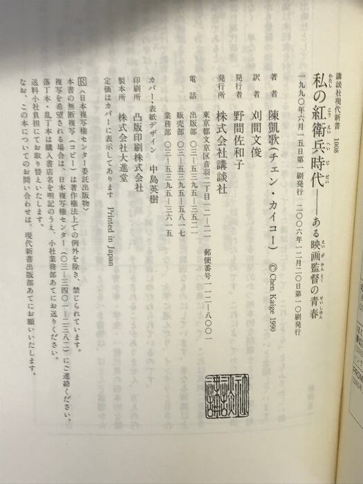 私の紅衛兵時代-ある映画監督の青春 (講談社現代新書) 講談社 陳 凱歌