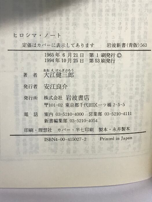ヒロシマ・ノート (岩波新書 青版 563) 岩波書店 大江 健三郎