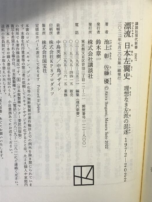 タイトル:漂流 日本左翼史 理想なき左派の混迷 1972-2022 (講談社現代新書) 講談社 池上 彰