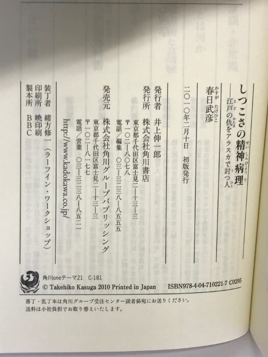 しつこさの精神病理 江戸の仇をアラスカで討つ人 (角川oneテーマ21 C 181) 角川書店(角川グループパブリッシング) 春日 武彦