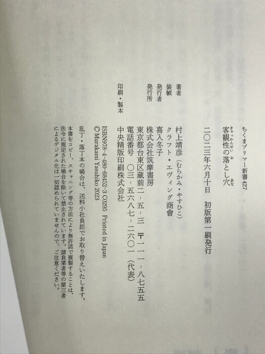 タイトル:客観性の落とし穴 (ちくまプリマー新書 427) 筑摩書房 村上 靖彦