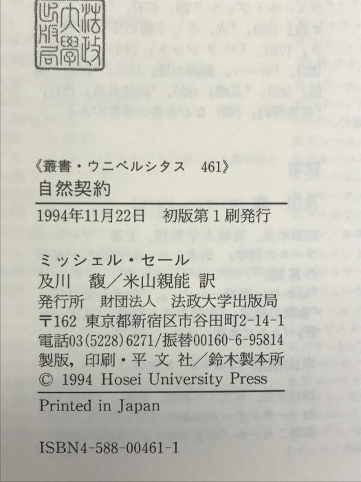 タイトル:自然契約 (叢書・ウニベルシタス 461) 法政大学出版局 ミッシェル セール