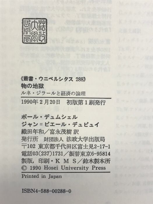 タイトル:物の地獄: ルネ・ジラールと経済の論理 (叢書・ウニベルシタス 288)