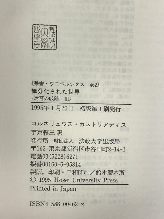 タイトル:細分化された世界: 迷宮の岐路 III (叢書・ウニベルシタス 462 迷宮の岐路 3) 法政大学出版局 コルネリュウス カストリアディス