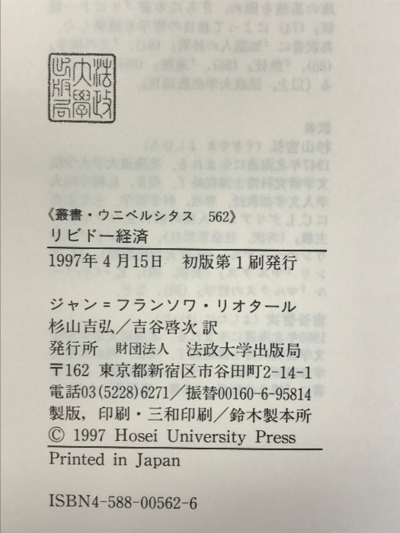タイトル:リビドー経済 (叢書・ウニベルシタス 562) 法政大学出版局 ジャン・フランソワ リオタール