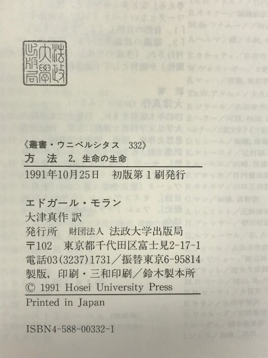 方法 2: 生命の生命 (22) (叢書・ウニベルシタス 332) 法政大学出版局 エドガール モラン