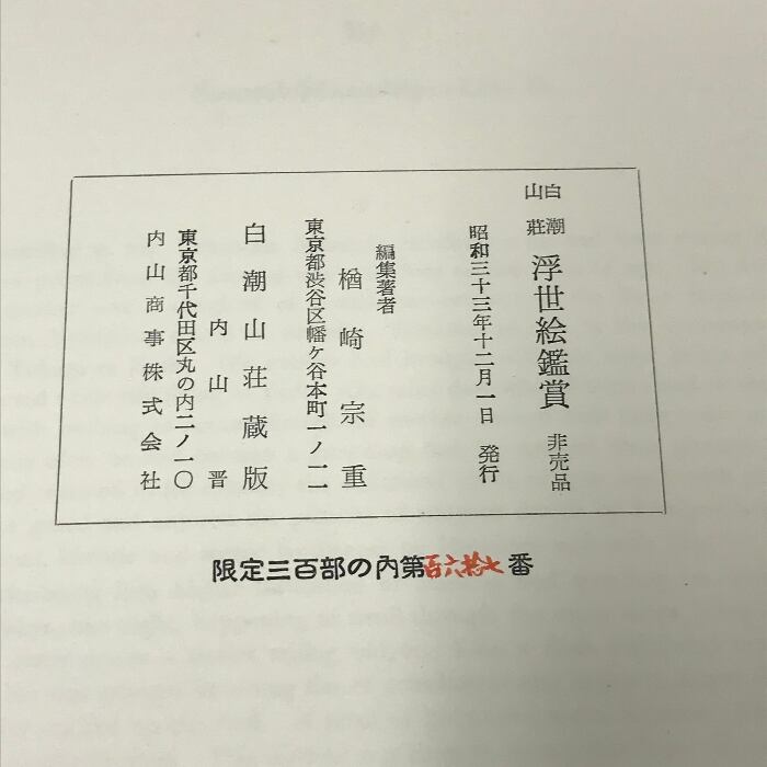 タイトル:浮世絵鑑賞 白潮山荘 楢崎宗重 限定300部の内167番