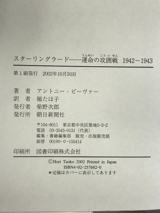 スターリングラード: 運命の攻囲戦1942-1943 朝日新聞出版 アントニー ビーヴァー