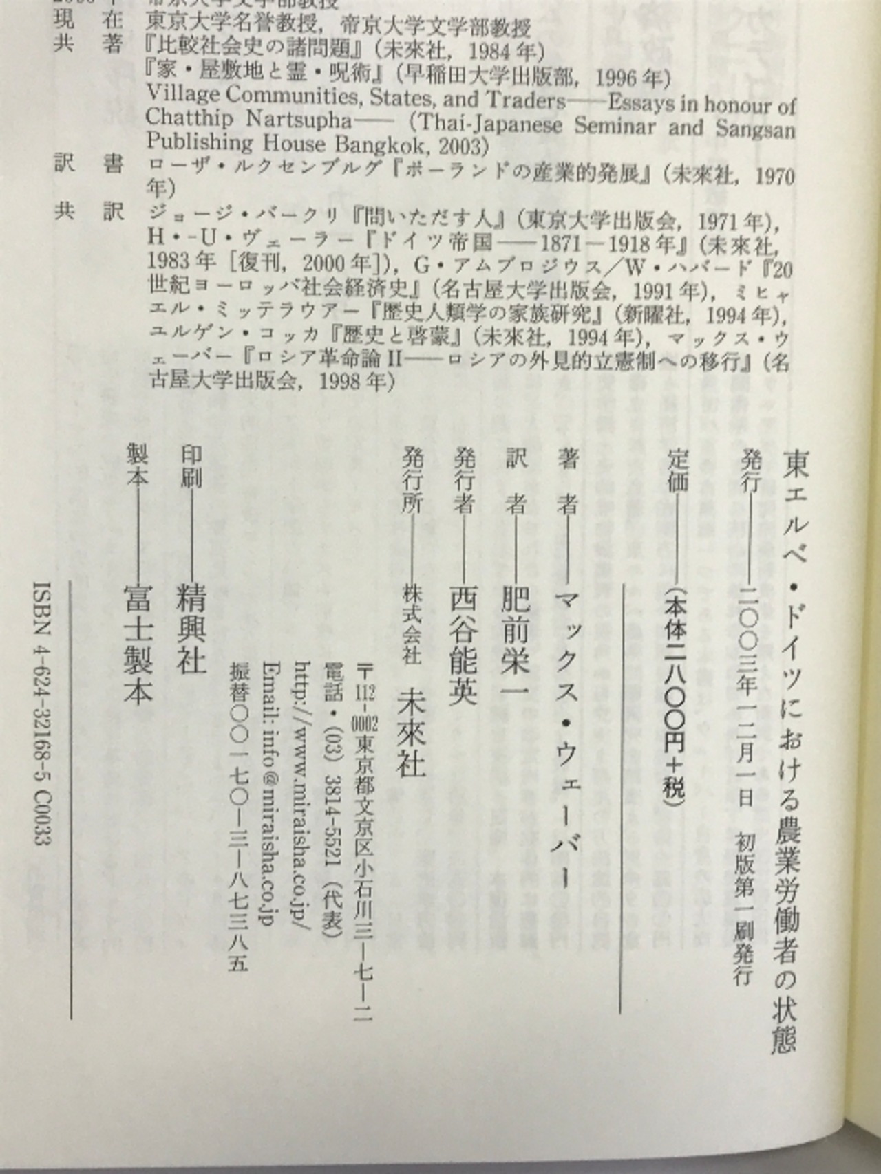タイトル:東エルベ・ドイツにおける農業労働者の状態 未来社 マックス ウェーバー