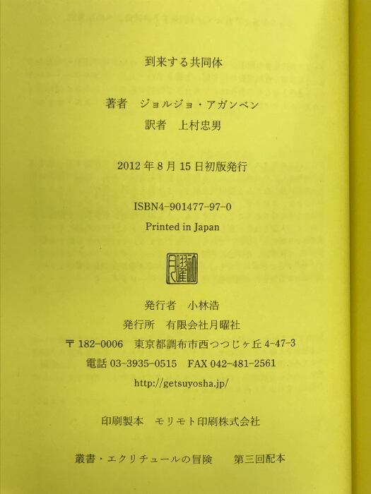 到来する共同体 (叢書・エクリチュールの冒険) 月曜社 ジョルジョ アガンベン