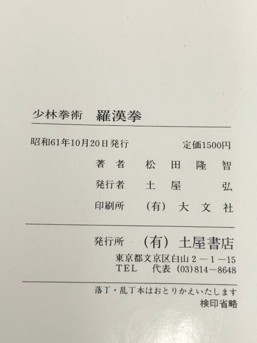 少林拳術羅漢拳: 基本から戦闘技術まで 土屋書店 松田 隆智