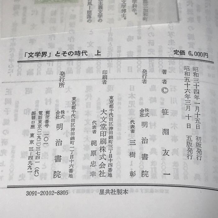 タイトル:文学界とその時代 上下巻 2冊 セット 明治書院 笹淵友一