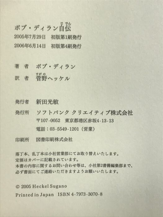 ボブ・ディラン自伝 SBクリエイティブ ボブ・ディラン