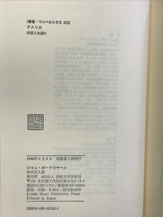 アメリカ: 砂漠よ永遠に (叢書・ウニベルシタス 232) 法政大学出版局 ジャン ボードリヤール