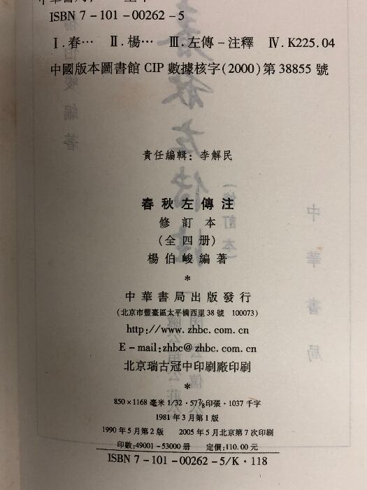 中国書 中国古典名著訳注叢書 春秋左伝注 修訂本 全4冊 中華書局