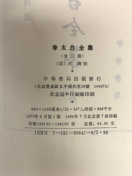 タイトル:中国書 中国古典文学基本叢書 李太白全集 上中下巻3冊セット 中華書局