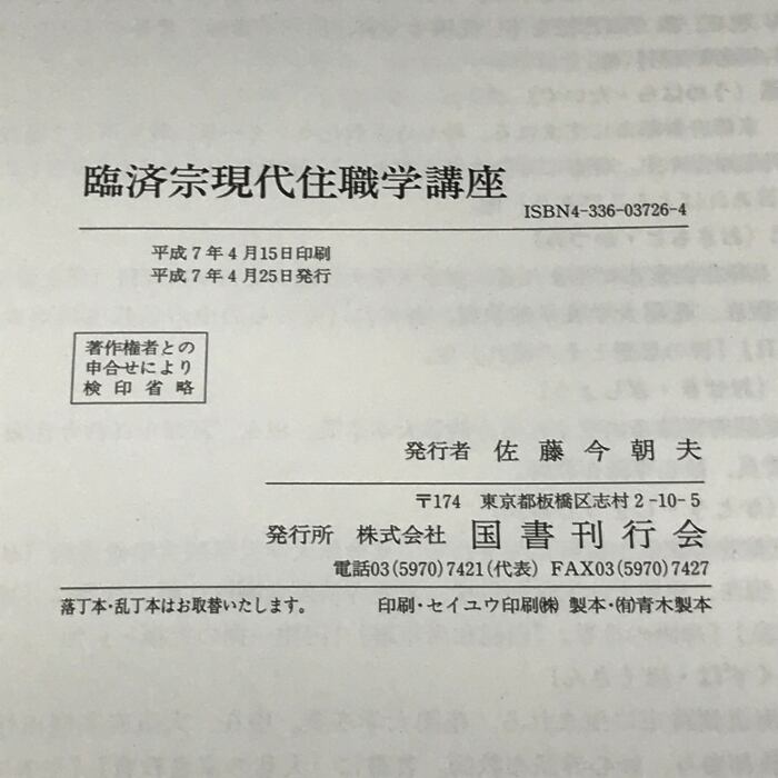 タイトル:臨済宗 現代住職学講座 国書刊行会 河野太通 別冊付き