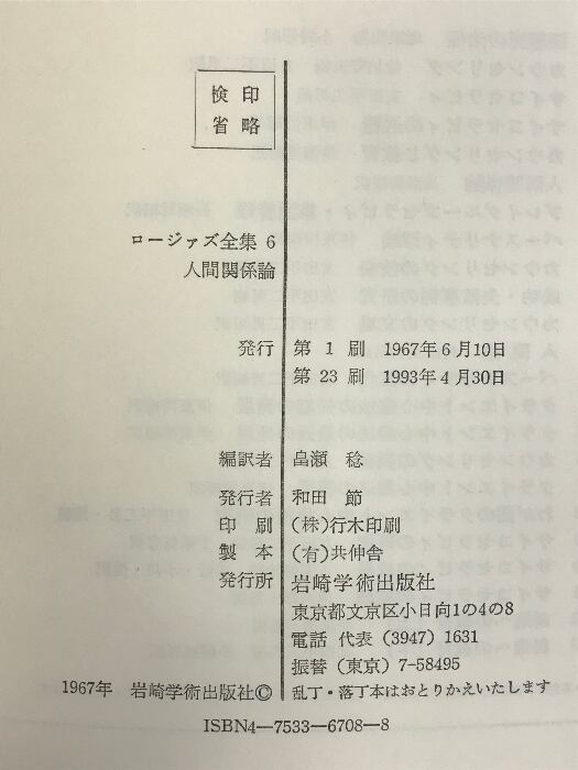 ロージァズ全集 6 岩崎学術出版社 C.R.ロージァズ