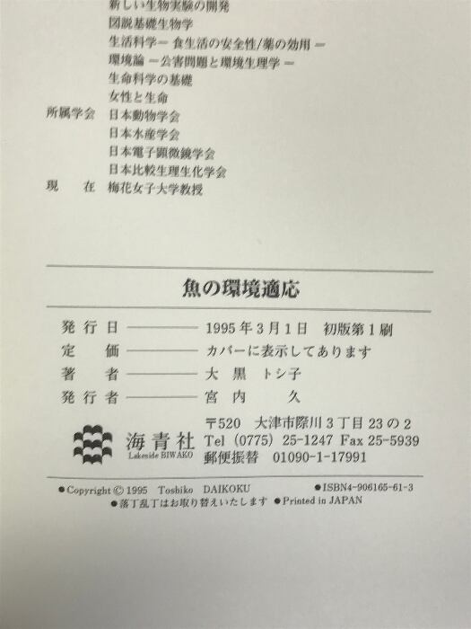タイトル:魚の環境適応 海青社 大黒 トシ子