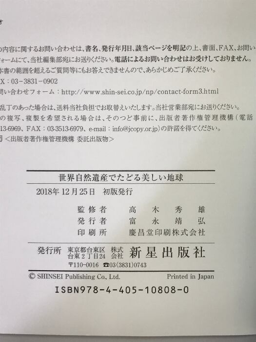タイトル:世界自然遺産でたどる 美しい地球 新星出版社 高木秀雄