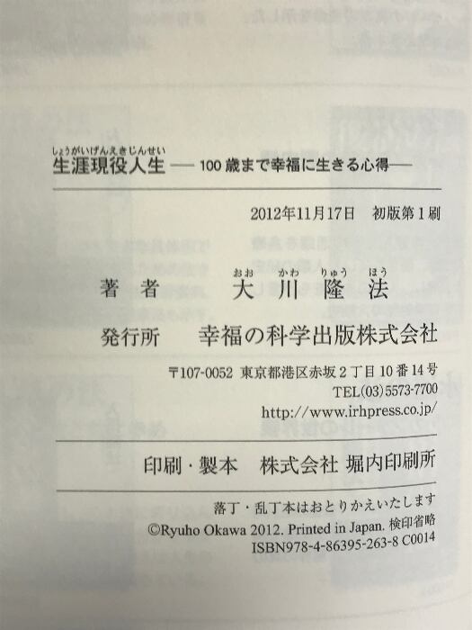 タイトル:生涯現役人生―100歳まで幸福に生きる心得 (OR books) 幸福の科学出版 大川 隆法