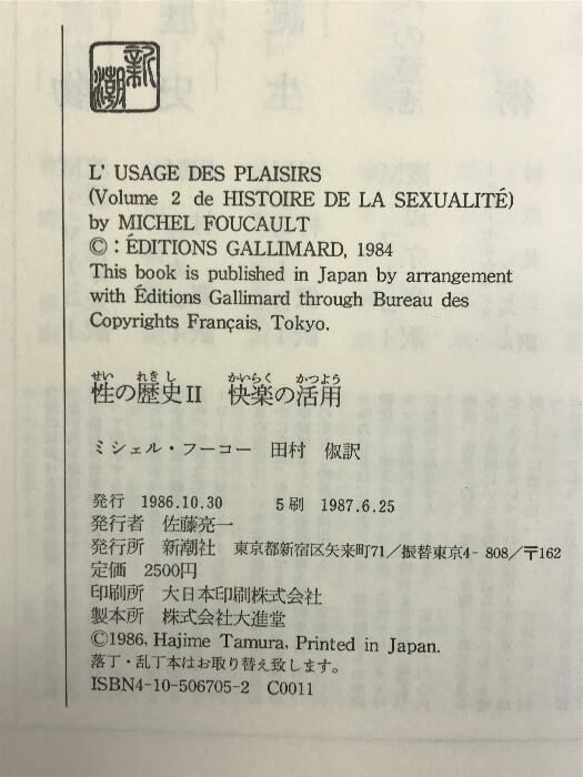 性の歴史 2 快楽の活用 新潮社 ミシェル・フーコー