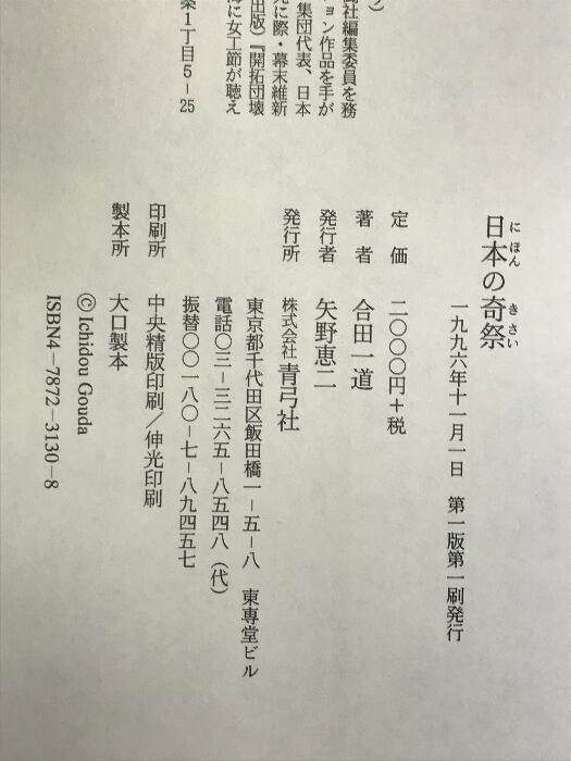 尻振り祭り、寒中みそぎ、くらやみ祭り、泣き相撲、けんか祭り……土地の人々に親しまれ、育まれ、深く根ざした祭り──それはもはやその土地の色であり、匂いであり、温度であり、生活である。各地で連綿と受け継がれている奇祭の数々を紹介する。