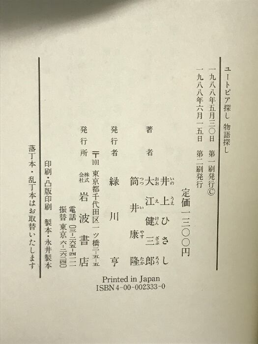 タイトル:ユートピア探し物語探し: 文学の未来に向けて 岩波書店 井上 ひさし