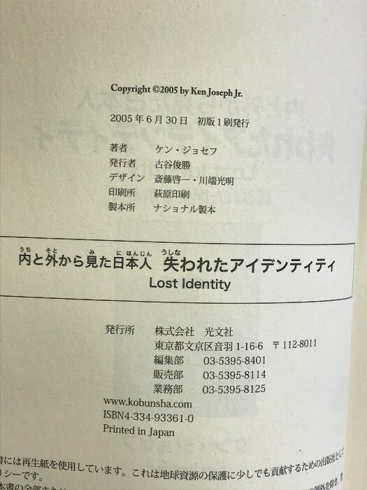 タイトル:失われたアイデンティティ (ペーパーバックス) 光文社 ケン・ジョセフ