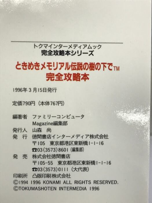タイトル:ときめきメモリアル 伝説の樹の下で 完全攻略本シリーズ KOMAMI 徳間書店 1996年