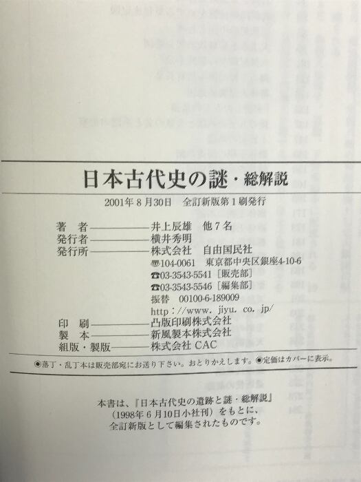 日本古代史の謎 全訂新版: 歴史の向こうに蘇える遠古からのメッセージ (総解説シリーズ) 自由国民社 井上 辰雄