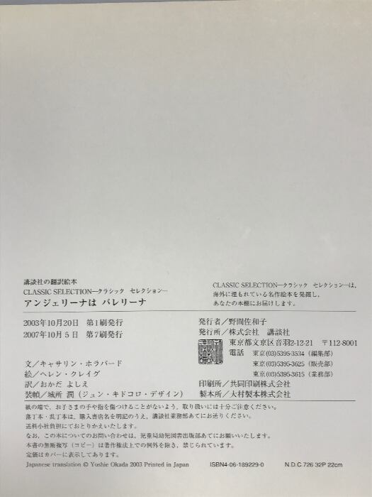 タイトル:アンジェリーナは バレリーナ (講談社の翻訳絵本 クラシックセレクション) 講談社 キャサリン ホラバード