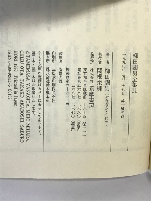 柳田國男全集 11 (ちくま文庫 や 6-11) 筑摩書房 柳田 国男