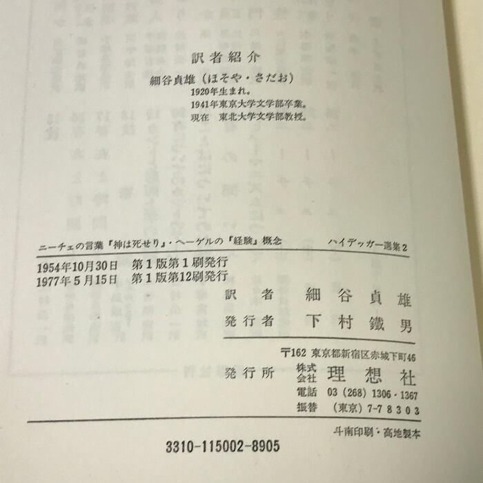 タイトル:ハイデッガー選集 2 ニーチェの言葉「神は死せり」 ヘーゲルの「経験」概念 マルティン・ハイデッガー