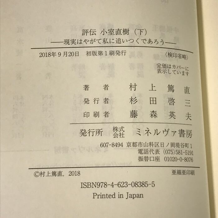 タイトル:評伝 小室直樹(下):現実はやがて私に追いつくであろう ミネルヴァ書房 村上篤直