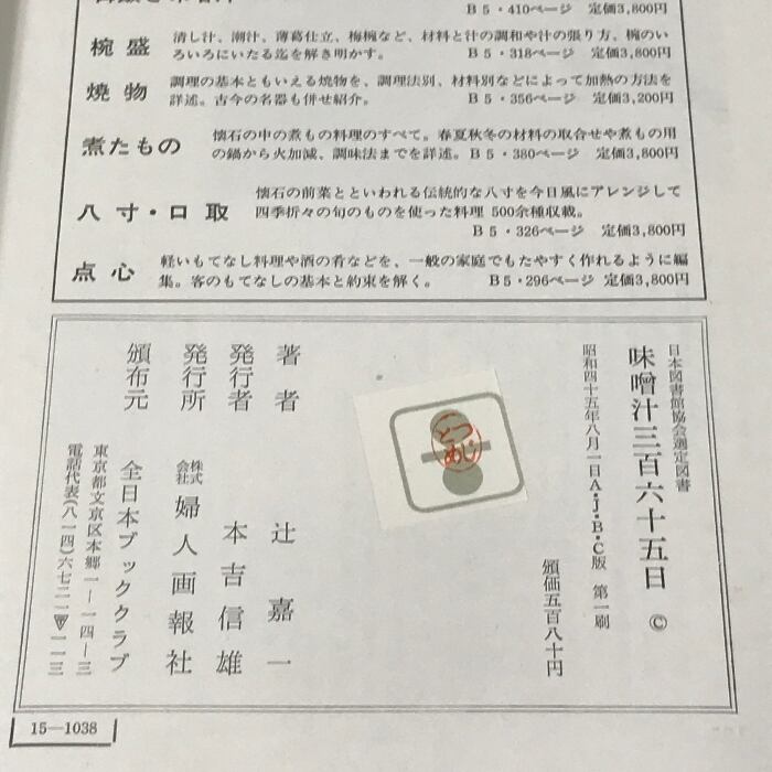 タイトル:味噌汁三百六十五日 辻留 辻 嘉一 婦人画報社 附録付き