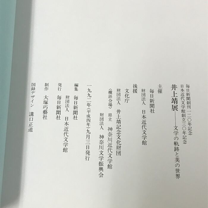 図録 井上靖展 文学の軌跡と美の世界 毎日新聞創刊120年記念 日本近代文学館創立30年記念 毎日新聞社