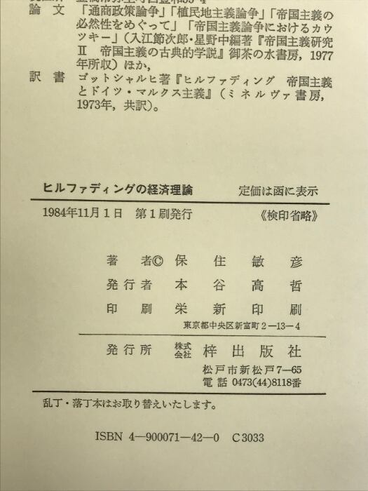 タイトル:ヒルファディングの経済理論: 金融資本・帝国主義・組織資本主義をめぐって 梓出版社 保住 敏彦