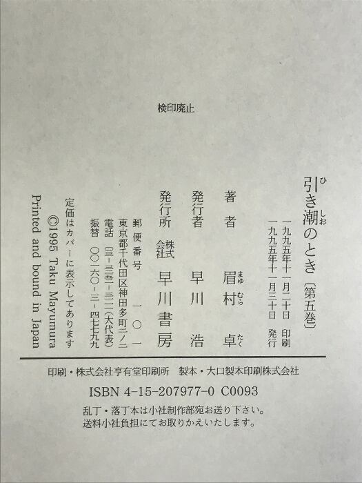 タイトル:引き潮のとき 第5巻 早川書房 眉村 卓