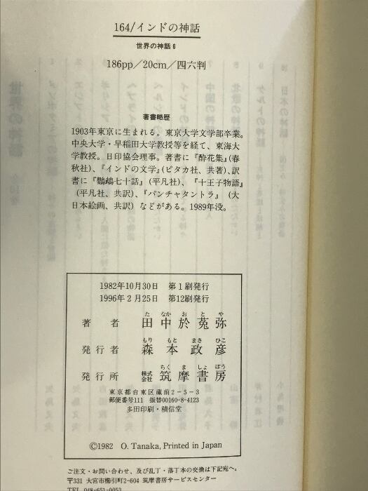 タイトル:世界の神話 6 筑摩書房 田中 於菟彌