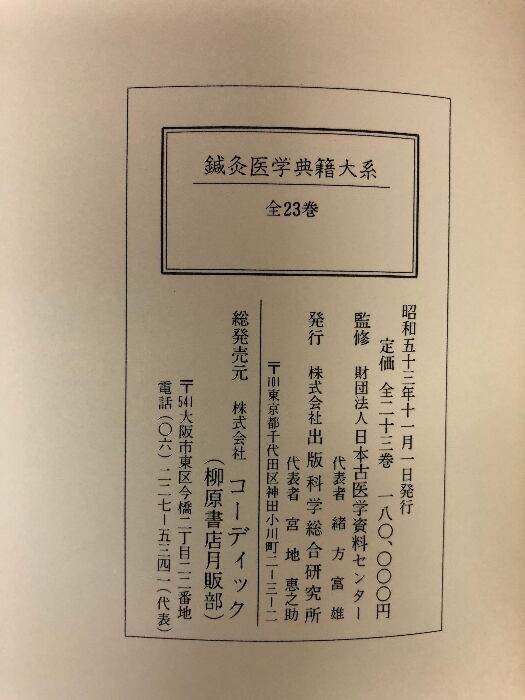 タイトル:鍼灸医学典籍大系 全21巻+別巻2冊 計23冊セット 日本古医学資料センター 出版科学総合研究所