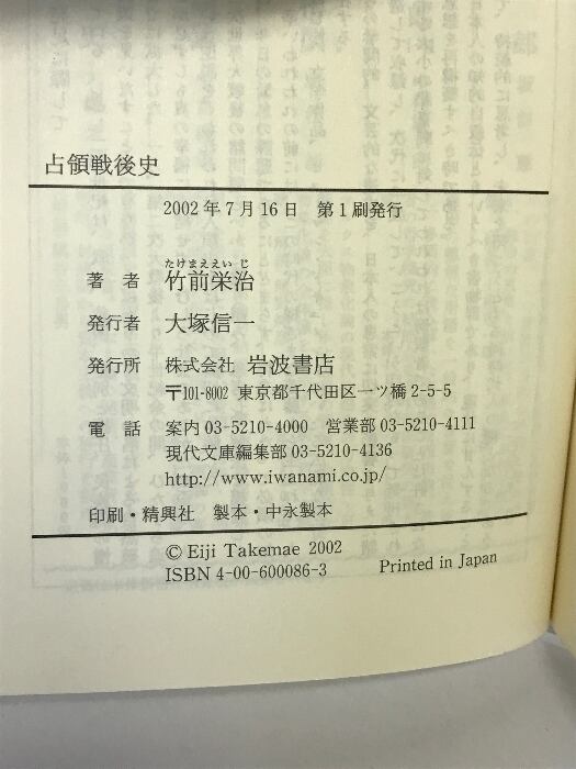 占領戦後史 (岩波現代文庫 学術 86) 岩波書店 竹前 栄治