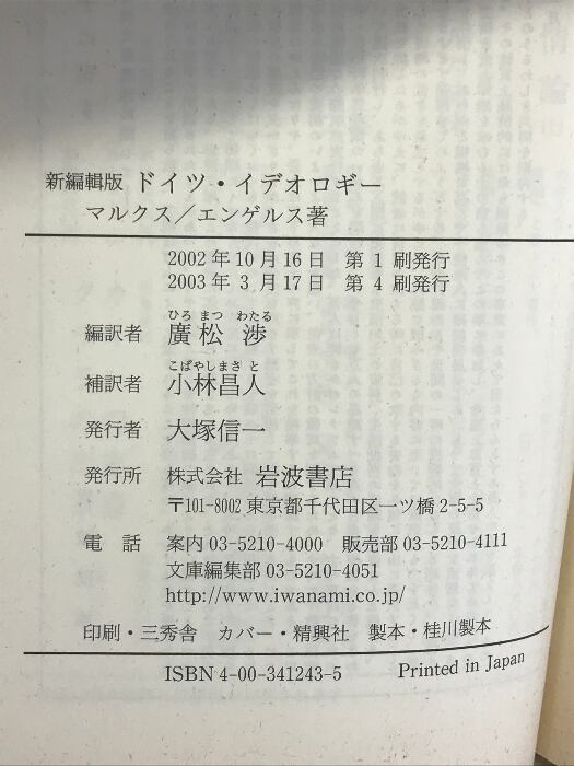 ドイツ・イデオロギー 新編輯版 (岩波文庫) 岩波書店 マルクス