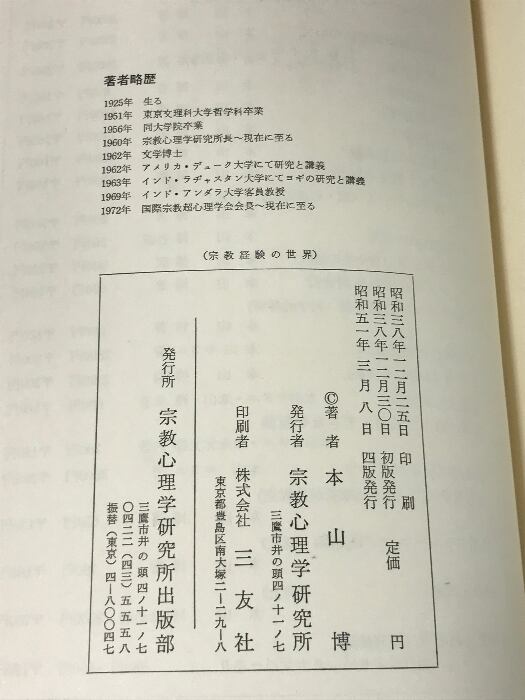 タイトル:宗教経験の世界 医学的心理学的探究と体験的形而上学的解明 宗教心理学研究所 本山博