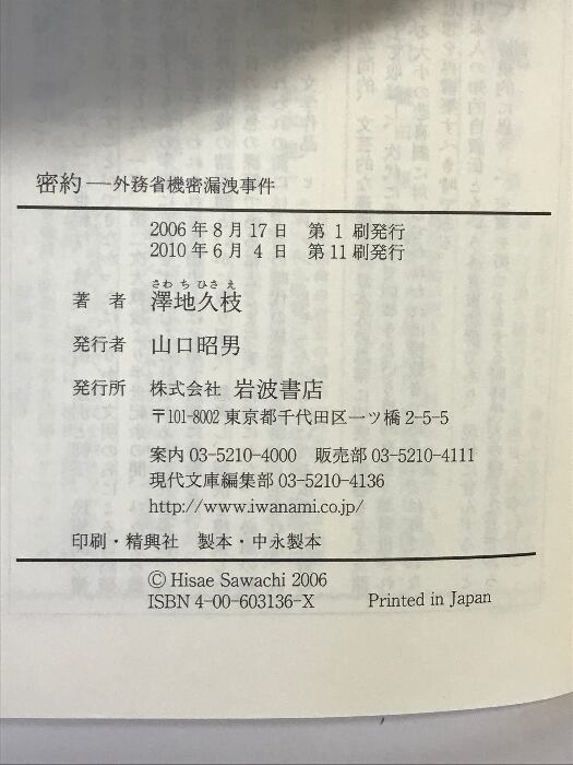 タイトル:密約: 外務省機密漏洩事件 (岩波現代文庫 社会 136) 岩波書店 澤地 久枝